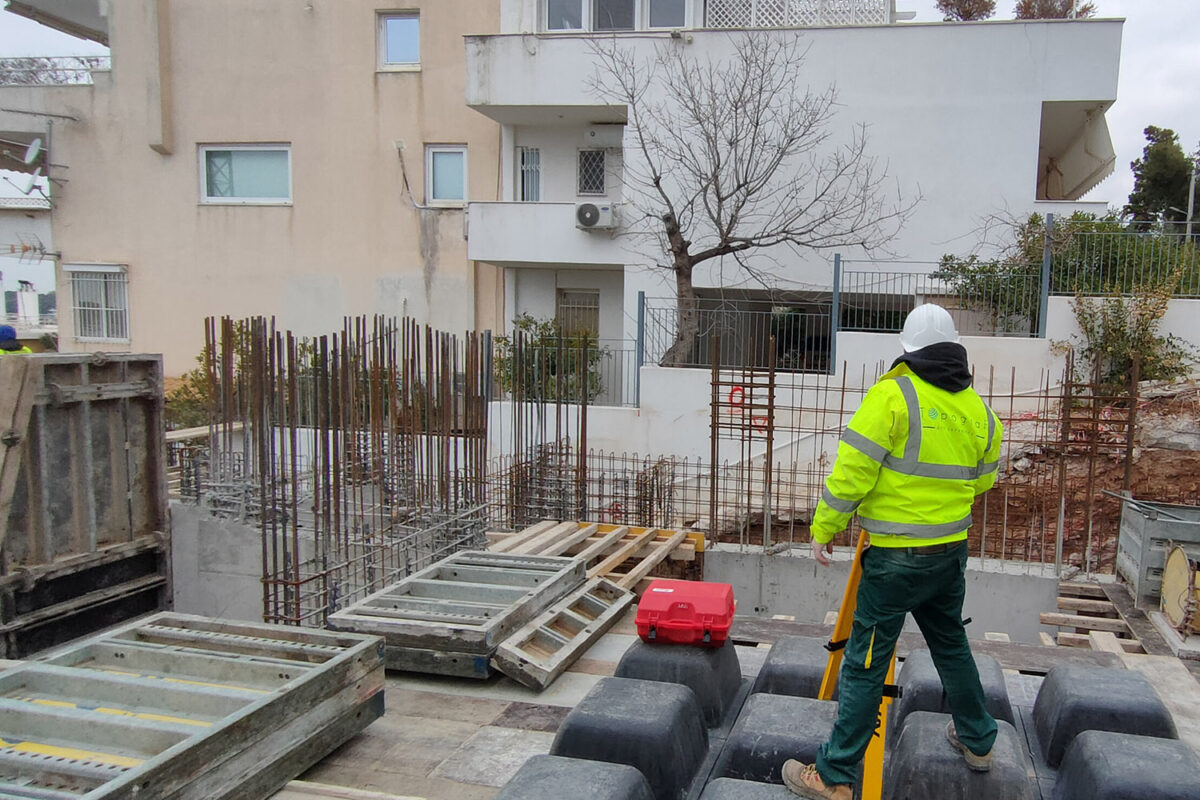 Ανέγερση τριώροφης οικοδομής με δύο υπόγεια, πατάρι, σοφίτα, φυτεμένη στέγη και δύο πισίνες σε ισόγειο και όροφο.